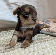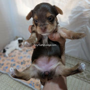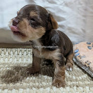 Meet Charleigh (4.3 lbs) & Tristan's (3.7 lbs) last born girl who is the tiny tot or the 3! She is a scrumptious chocolate girl and she could resemble her mama, Charleigh, as she gets older. Her tail is docked, and dew claws removed. Both of her parents are very PETITE!